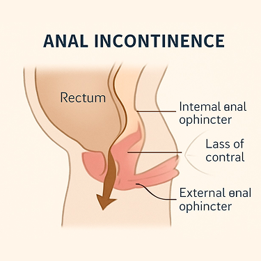 This is the involuntary leakage of stool or gas due to weakened anal muscles or nerve damage. It can occur after childbirth, surgery, or neurological disorders. Treatment may involve pelvic therapy, dietary changes, or surgical repair.