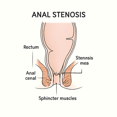 Anal stenosis is the narrowing of the anal canal, typically after surgery or chronic inflammation. It leads to difficulty or pain during defecation. Treatment ranges from dietary adjustments to dilation and, in severe cases, surgical correction.