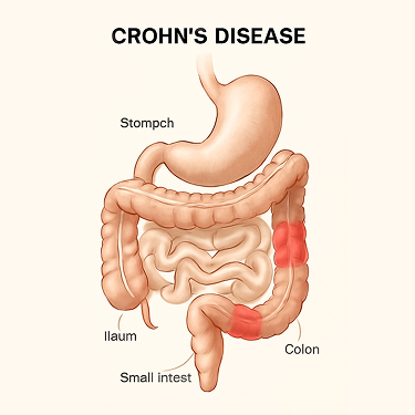 Crohn’s is a chronic inflammatory bowel disease affecting any part of the digestive tract. It leads to abdominal pain, persistent diarrhea, weight loss, and fatigue. There is no cure, but it can be managed through medication, dietary changes, and surgical options if necessary.