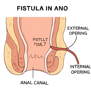 This is an abnormal tunnel that forms between the anal canal and the skin around the anus. It's often the result of a previously untreated abscess. Symptoms include pus discharge, irritation, and pain. Surgical treatment is usually required to prevent recurrence and ensure healing.