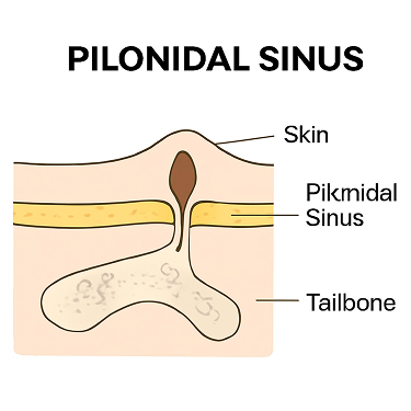 This is a small tunnel or cyst near the tailbone, often filled with hair and skin debris. It can become infected and form an abscess, causing pain and discharge. It’s more common in young men and those who sit for long periods. Surgery is the standard treatment.