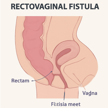 A rectovaginal fistula is an unwanted connection between the rectum and vagina, leading to the passage of stool or gas through the vagina. Common causes include childbirth trauma, surgery, or infections. Surgery is usually required for complete repair and quality-of-life improvement.